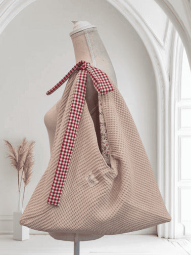 Un bolso reversible ideal para el día a día. Inspirado en el origami japonés y original por su cierre con un bonito lazo en el hombro.