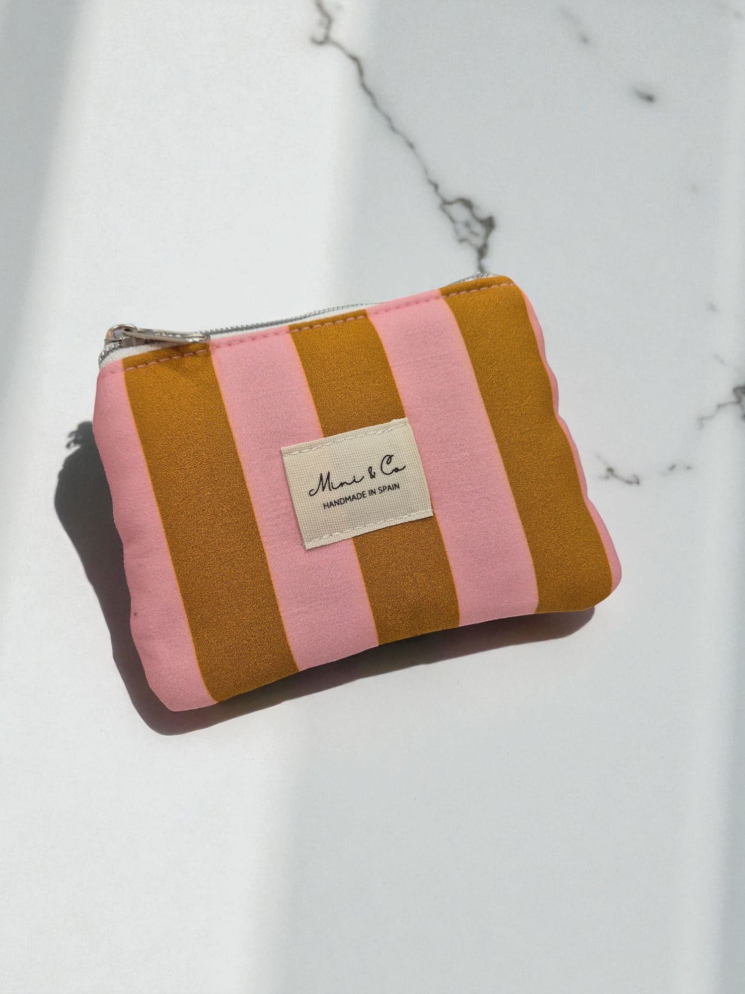 Descubre nuestra carterita pequeña de 10×15 cm, un accesorio artesanal perfecto para organizar tus imprescindibles con estilo. Confeccionada en un elegante estampado marrón y rosa.