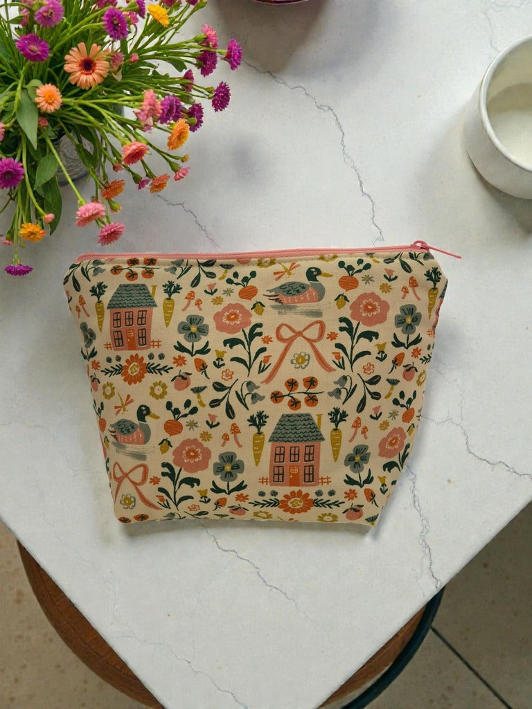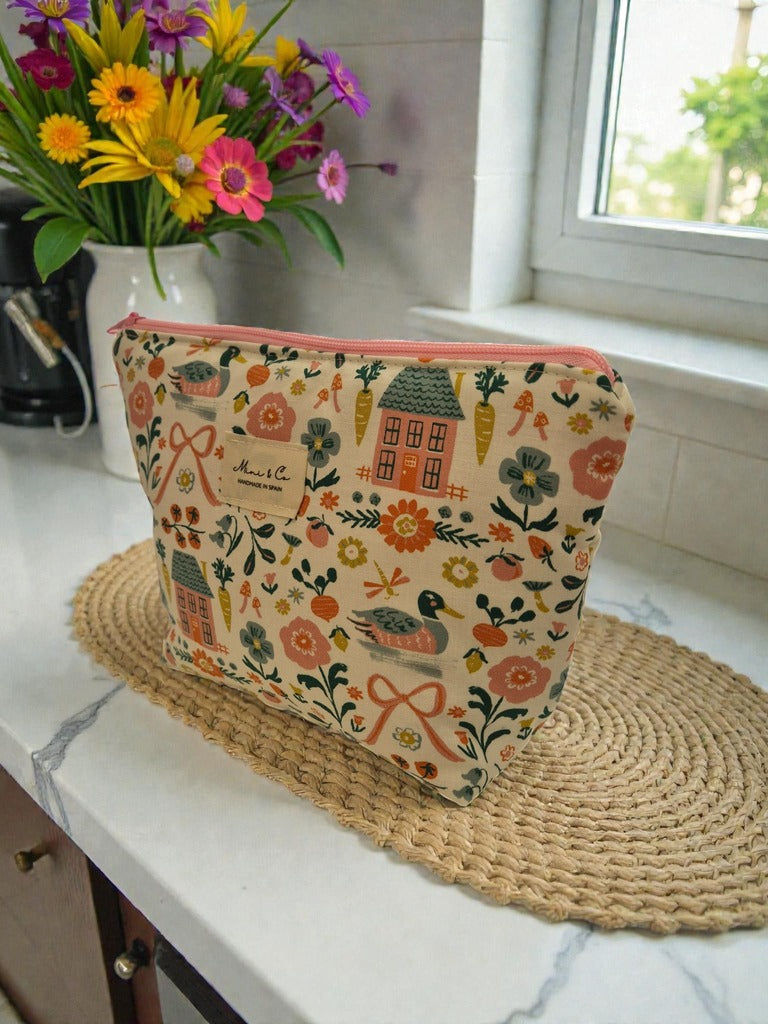 Sumérgete en la tranquilidad del campo con nuestro adorable neceser artesanal con estampado de granja, ideal para añadir un toque de calma y naturaleza a tu día a día. Este estuche está hecho a mano en España con mimo y es perfecto como bolsa de aseo, neceser de maquillaje o estuche organizador para llevar tus pertenencias con estilo.