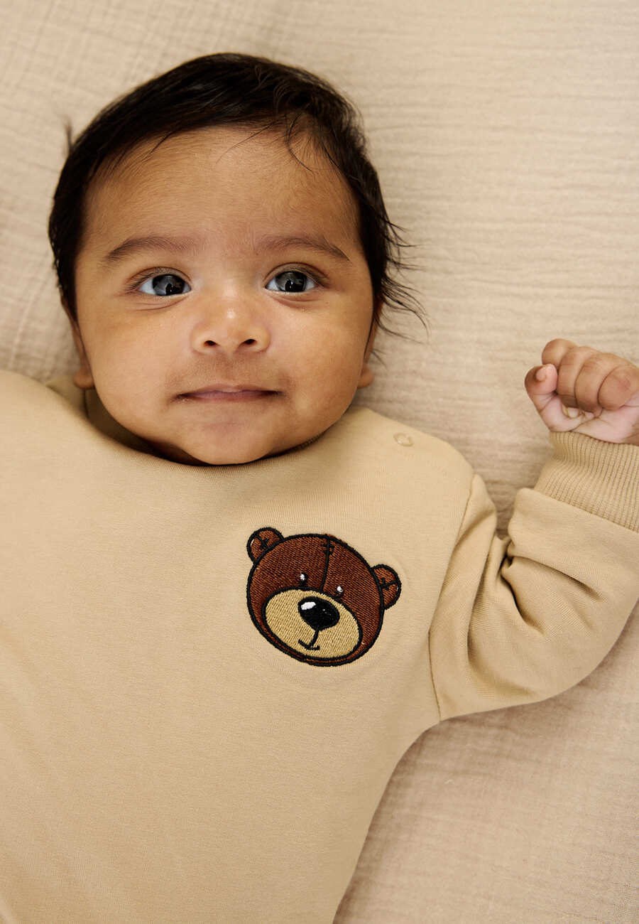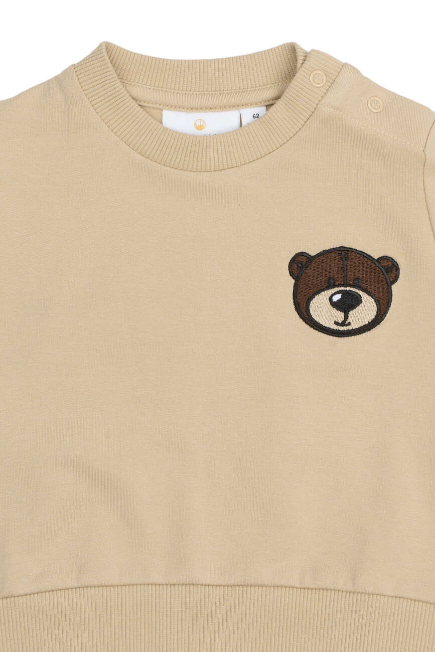 Sudadera de algodón color marrón claro con osito bordado en el pecho.