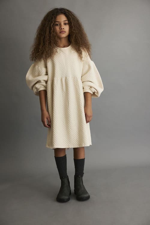 - Vestido con escote redondo con cierre de lágrima en la espalda.